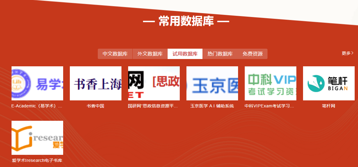 2.图书馆网站访问:常用数据库—— 试用数据库——E-Academic易学术