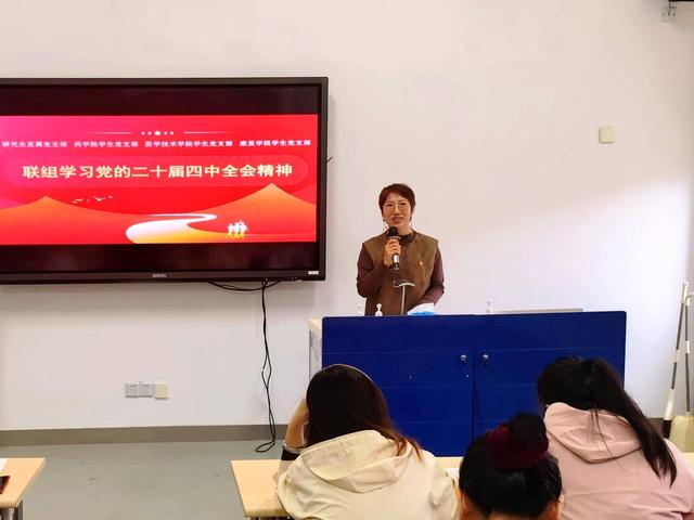 11月6日,永利官网研究生直属党支部、药学院学生党支部、医学技术学院学生党支部和康复学院学生党支部师生共同围绕“深入学习党的二十届四中全会精神”开展了联组学习。会议由研究生直属党支部书记蒋瑛英主持。