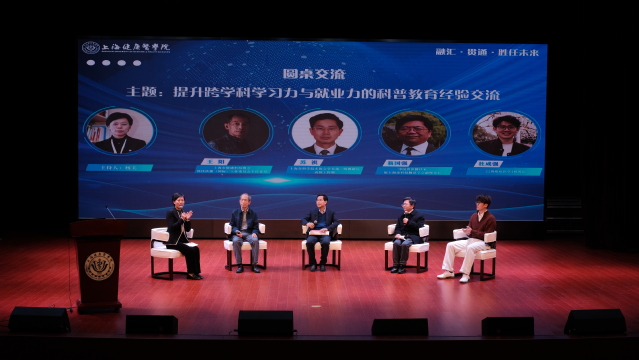 圆桌交流环节,杨美、王阳、苏祺、翁国强与杜成强围绕“提升跨学科学习力与就业力的科普教育经验”展开深入探讨。专家一致认为,跨学科能力培养需要“学科交叉”。王阳强调企业实践的价值,苏祺关注医工交叉,翁国强则提倡多学科协同学习。他们共同呼吁医学生加强医工交叉素养,拥有国际视野、专业精神、人文关怀、科技伦理等素养。