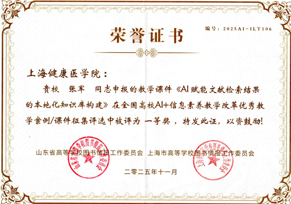 我们将以此为契机,继续深化信息素养教学改革,推动人工智能与教育实践的深度融合,为培养具备高阶信息素养与创新能力的健康医学人才不断努力。