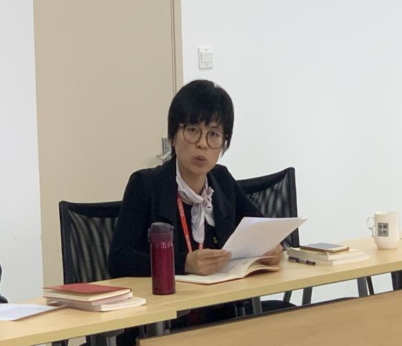 李茜老师自学初读,聆听专家解读,下功夫研读《纲要》内容,提出新时代青年党员要坚定共产主义理想信念,带头做到两个维护,增强文化自信,积极传承和弘扬优秀文化传统,在创新中奋斗,在平凡岗位上建新功。