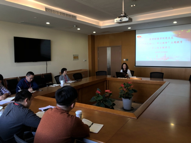 10月30日中午,医学影像学院党总支在南苑影像楼310会议室举行“不忘初心、牢记使命”主题教育中心组第六次学习研讨会,学院党总支书记刘红主持,党总支中心组成员参加学习研讨。