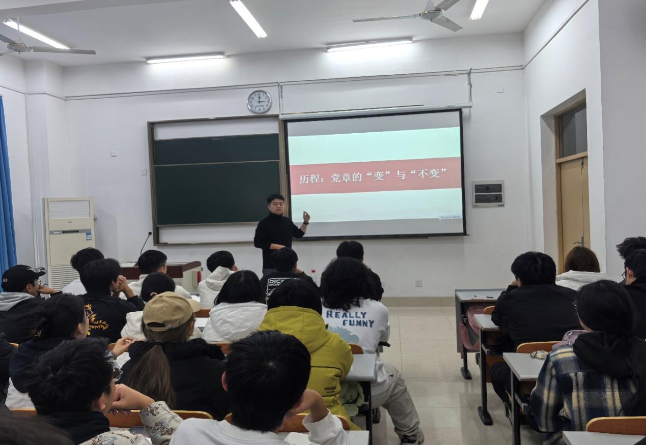 11月20日前后,医疗器械学院面向2025年10月31日前向党组织提交入党申请书的近90名新生,开展“学党章强信仰”主题培训,具体通过“理论授课+自主学习”相结合的方式进行。培训中,特别邀请到上海交通大学医学院党委组织员葛鹏程老师,为新生入党申请人进行“认真学习党章,严格遵守党章,争做新时代合格共产党员”的主题党课。从“党章是什么”到“党章的‘变’与‘不变’”,葛老师不仅深刻阐释党章的本质内涵、系统梳理党章的历史逻辑,还结合医工专业特点,为新生入党申请人开具日常“行动处方”。