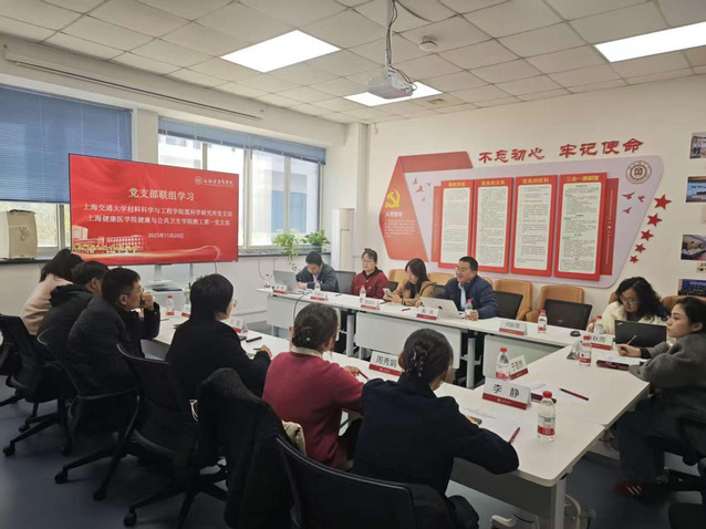 为共同推进党建和业务发展,20251120日,健康与公共卫生学院教工第一党支部与上海交通大学材料科学与工程学院氢科学研究所党支部在上海交通大学闵行校区开展联合党建活动。双方党员共聚一堂,共话交流合作,通过资源整合,优势互补,共谋党建与业务融合发展。上海交通大学材料科学与工程学院院长戴庆、永利集团88304官网健康与公共卫生学院党总支书记顾斐雯副书记、副院长张浩出席活动。