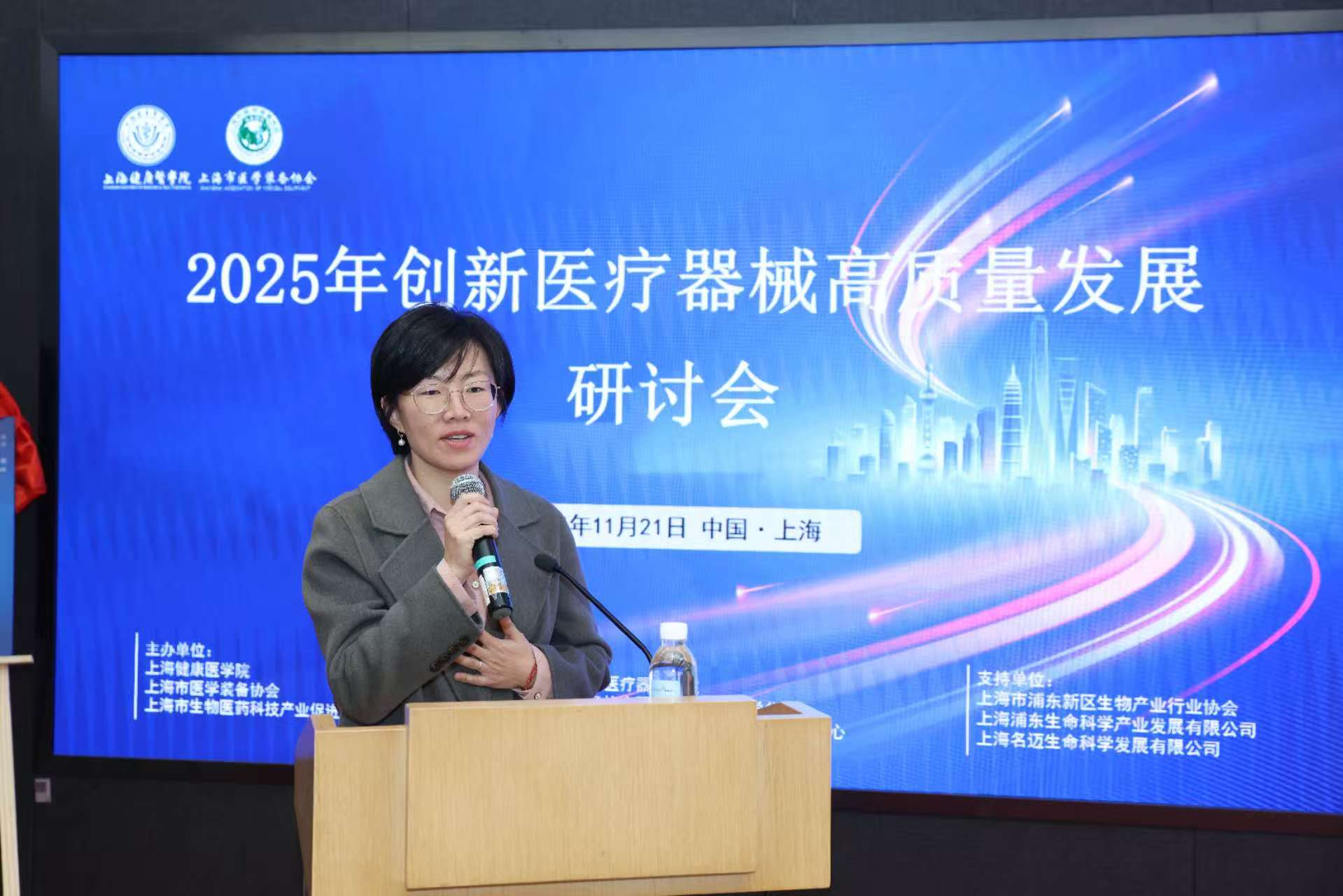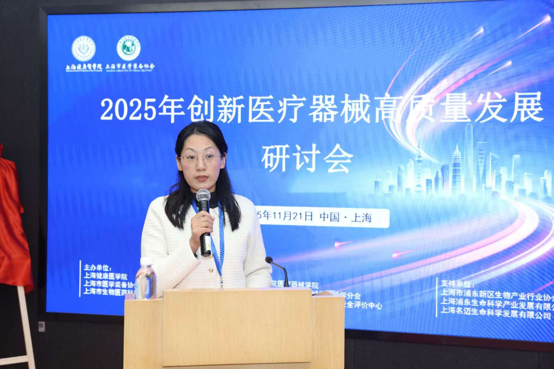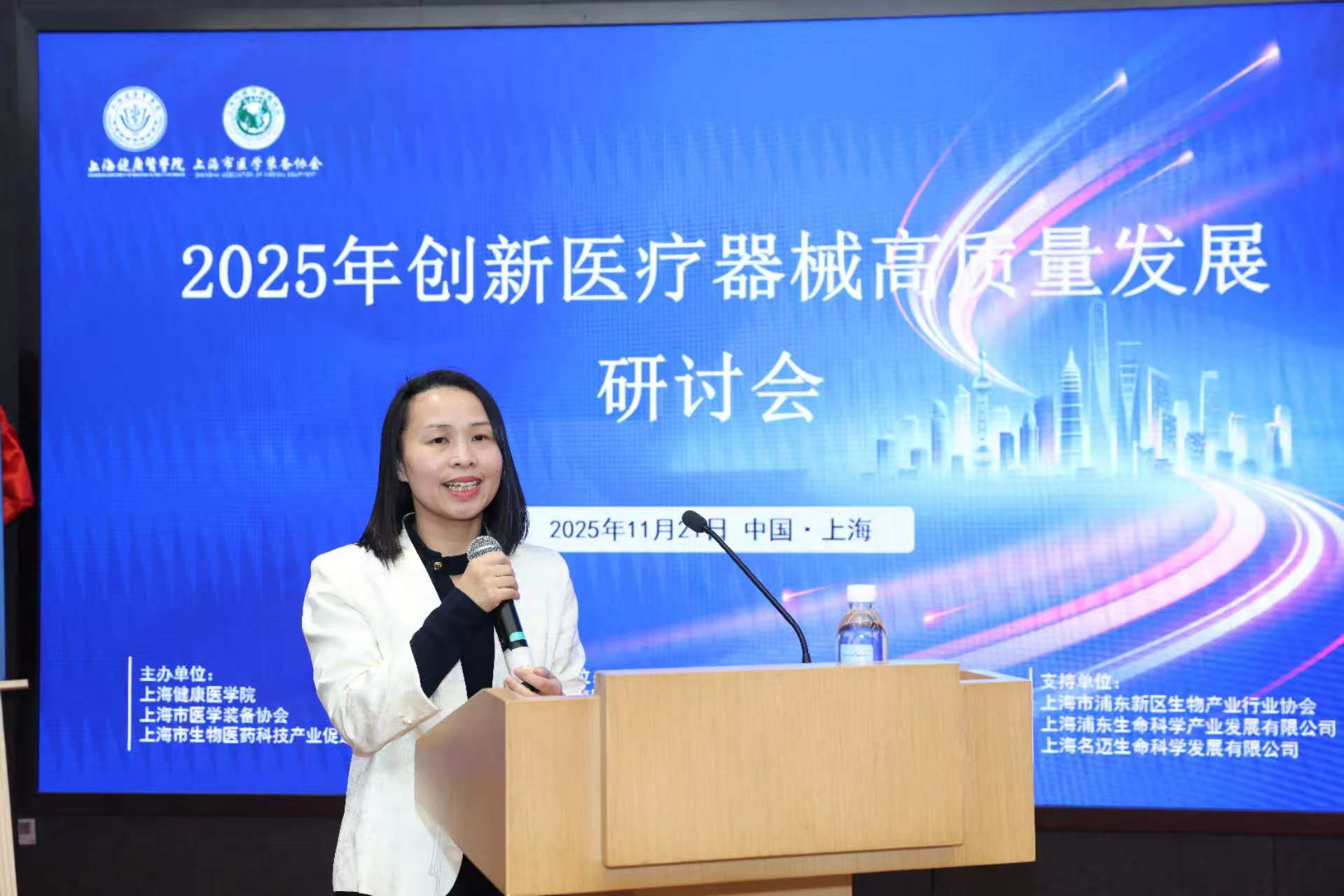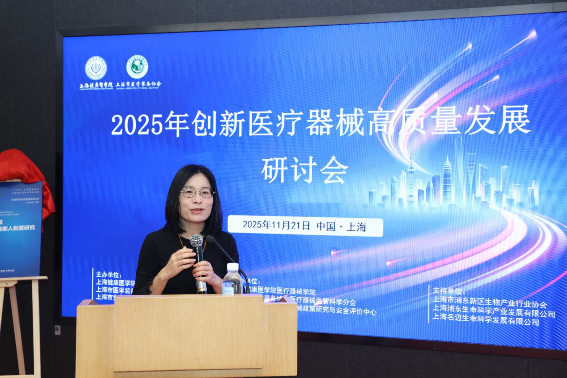2025年11月21日,由永利集团88304官网、上海市医学装备协会、上海市生物医药科技产业促进中心联合主办,永利集团88304官网医疗器械学院、上海市医学装备协会医疗器械监管科学分会、永利集团88304官网医疗器械政策研究与安全评价中心承办的创新医疗器械高质量发展研讨会在上海泰隆银行大厦三楼会议室举行。本次会议汇聚了政府领导、高校专家、医疗机构代表及企业精英,共同围绕创新医疗器械的准入、审评、转化与管理等关键议题展开深入交流。