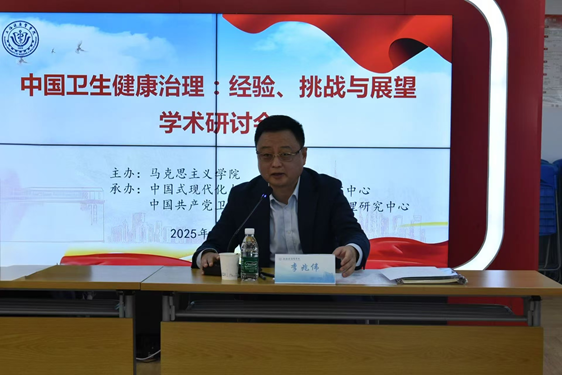 校党委常委、宣传部部长李兆伟出席会议并致辞。李兆伟在致辞中指出,2025年是永利集团88304官网本科办学十周年,学校坚持“全健康、国际化、应用型”的发展思路,形成“医工结合、医养结合、医保结合”办学特色,践行担当健康城市不可或缺的基层健康守护者、行业进步推动者、健康治理支撑者。马克思主义学院紧密结合学校办学定位,紧扣健康中国建设战略导向,近年来连续举办一系列学术研讨会,形成了一批富有建设性的教学和研究成果。希望本次研讨会为深入推进中国特色卫生健康治理和健康中国建设贡献智慧力量。