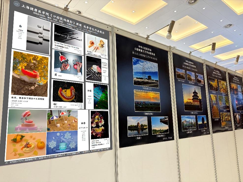 本次年会设置了主题报告、教学论坛、病例展示及技师分享等环节,与会专家围绕数字化技术发展与修复工艺教学改革等议题展开深入交流。会议首次增设摄影作品交流展板,口腔医学技术专业《口腔数码摄影》课程的10幅本科生作品经学科带头人傅远飞主任推荐,在大会上展示。这些作品聚焦于义齿制作工艺细节,以视觉语言生动诠释了学科“精雕细琢、知行合一”的专业特质,成为会场中一道独特的文化风景。