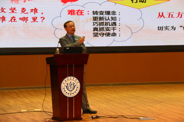 黄钢校长提出要在五个方面加快学校改革发展步伐,一是转变理念,贯彻教育初心,充分发挥主观能动性,在教育教学与教学管理中注入人文元素,让健康人才的培养更加有温度,让健康校园的色彩更加鲜活;二是更新认知,坚持与时俱进,形成师生中心,共同成长,回归本源;实现数据驱动,创新模式,提升效率;达到生态协同,相融相通,互为依存;成就价值提升,坚持定位,创新发展;三是巧抓机遇,服务健康中国,围绕大健康培养人才,服务大健康相关领域,扎根健康中国大地办学,培养基层健康的守护人,引入先进技术理念,构建互动学习环境;四是真抓实干,推进创新学习,积极探索适合永利官网作为应用型人才培养基本目标的以项目为主导的育人模式;五是坚守使命,实现共同成长,教师和学生都要做到政治要强、情怀要深、思维要新、视野要广、自律要严、人格要正。
