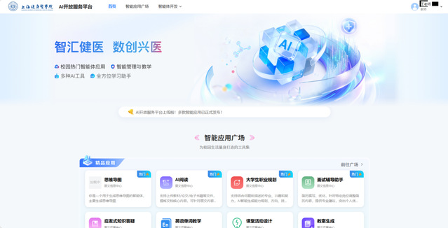 为积极响应国家教育数字化战略,紧扣“人工智能赋能教育”改革重点,永利集团88304官网AI融合门户(开放服务平台)正式上线试运行。平台聚焦健康医学领域教育教学需求,搭建人工智能技术底座,为全校师生开展AI创新应用实践提供核心技术支撑,助力师生按需定制适配教育、科研创新等多样化场景的智能应用,以技术创新驱动教育教学模式变革。