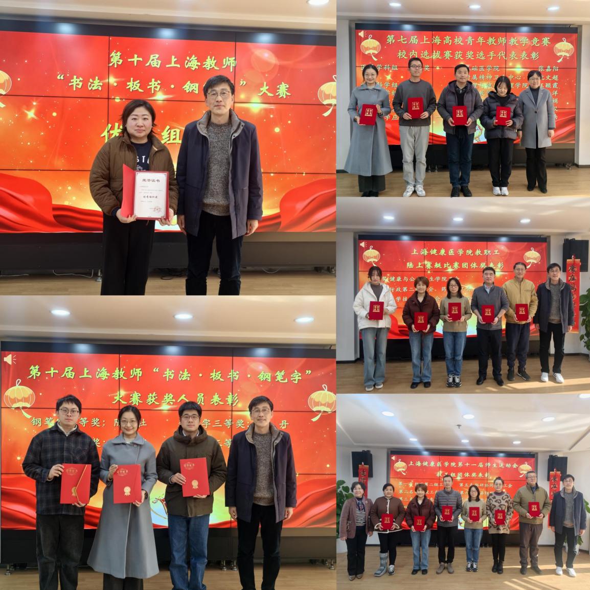 首先,教务处处长、教师教学发展中心主任王莉,工会副主席、医学影像学院院长李晓欧,工会常务副主席凌文惠为获奖人员颁奖。永利官网荣获第十届上海教师“书法·板书·钢笔字”大赛集体优秀组织奖、个人二等奖2人、三等奖2人;第七届上海高校青年教师教学竞赛校内选拔赛一等奖7人;永利集团88304官网第十一届师生运动会教工组团体前八名;永利集团88304官网教职工陆上赛艇比赛团体奖前六名。