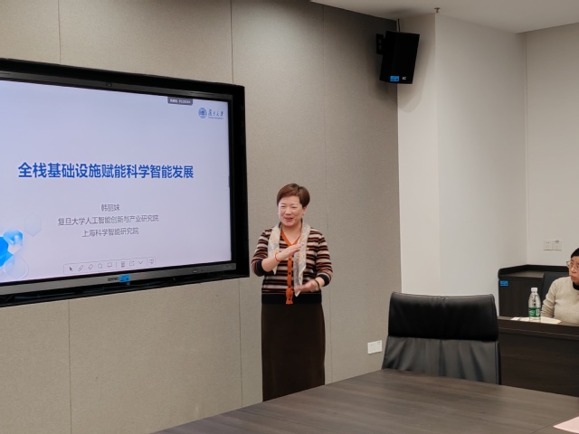 1月19日下午,药学院召开校级科研平台“数智赋能生物医药创新中心”建设推进会,会议特邀复旦大学人工智能创新与产业研究院副院长韩丽妹前来指导并作专题讲座。她以“全栈基础设施赋能科学智能发展”为题,重点介绍了复旦大学CFFF(Computing for the Future at Fudan)智算平台的建设理念、合作模式与最新成果,为药学院推动AI for Pharmacy的发展与转型提供了深刻见解。科技处副处长陆秀宏,药学院党总支书记徐一新、药学院副院长解伟、孟祥国,协同科研中心外聘专家赵健、中心PI邬海龙,药学院学科带头人刘晓丽及骨干教师参加会议。