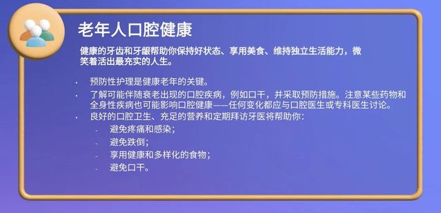 围绕婴幼儿、儿童与青少年、成人、老年人四个年龄段,世界牙科联盟(FDI)分别提出了清晰明确的口腔健康指导。从第一颗乳牙的呵护到老年期的功能维护,这些建议涵盖了生命不同阶段的照护重点与实用细节。以下内容带您快速了解,在人生的每一个阶段,如何用科学的方式守护口腔、守护全身健康。