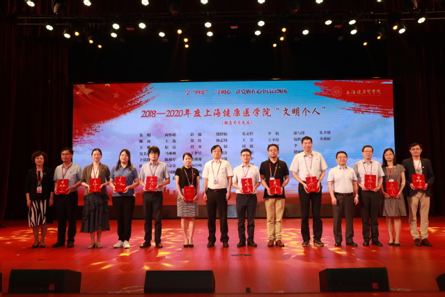 第二篇章,危难时刻显本色,战疫有我见初心。屏幕上展现了由党委宣传部制作的《致敬》微视频,生动展现了在人民生命安全受到极大危机时,永利官网师生、附属医院医护人员、校友,用不同方式履行白衣天使的职责,捍卫人民生命和健康,他们就是我们身边的英雄。由永利官网组织部、学工部、教务处、二级学院、附属医院、附属卫校、后勤服务中心、保卫处等讲述的真实故事《一切为了育人》。疫情就是命令,防控就是责任,他们在关键时刻选择逆行而上,毅然决然地践行党员初心,以实际行动为抗击疫情出一份力,奉献于抗击疫情一线,服务于防止疫情传播的社区,坚守于本职岗位教与学,我们都是“应考人”和“答卷人”。接着,副校长陈小冰、唐红梅、孔宪明为荣获2018-2020年度学校“文明个人”代表颁奖。