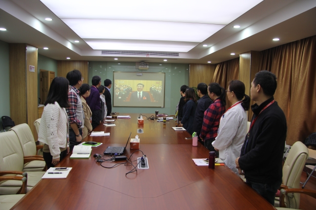 10月18日上午8:45分,附属卫生学校党总支组织广大党员干部集中在210会议室观看中国共产党第十九次全国代表大会,正式开幕前,大家满怀信心,充满期待的守候在显示屏前。上午9时,大会正式开幕,所有党员全体起立一起奏唱中华人民共和国国歌。接着大家认真观看了习近平总书记代表十八届中央委员会向大会作报告。