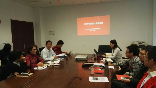 10月19日,马克思主义学院“形势与政策”课程组在南苑502会议室举行集体备课暨十九大报告专题学习会,马院主持工作副院长田霖霞以及担任“形势与政策”课兼职教师的各学院(教学部)党总支(直属党支部)书记、辅导员参加会议。会议由课程组负责人董明洁主持。