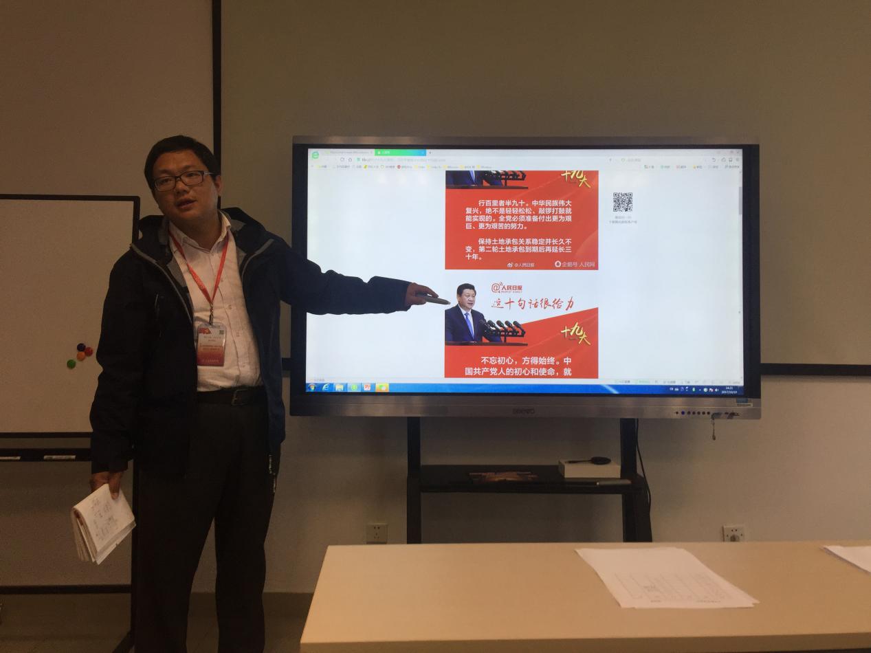 11月8日下午,在外语教学部党支部的部署下,全体教师开展了主题为“学习十九大精神”的政治学习,结合自身工作,专题研讨交流《党的十九大报告》的学习体会。