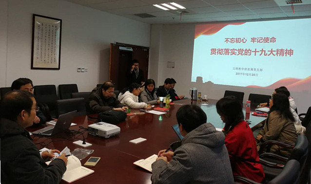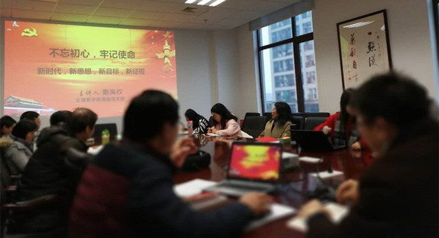 12月28日下午,文理教学部的党员与教师聚集在南苑2号楼302会议室,认真听取由文理教学部直属党支部书记秦禹权所作的题为《不忘初心,牢记使命——新时代,新思想,新目标,新征程》学习贯彻十九大精神专题辅导报告。