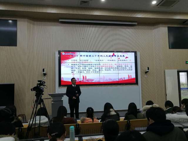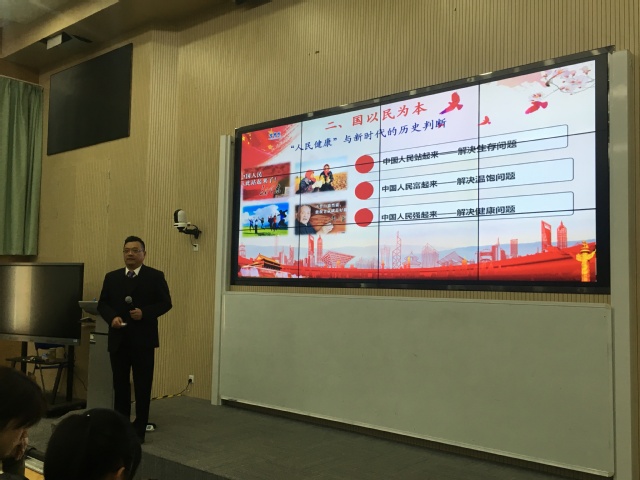 陈林军从人民健康和健康中国导入本堂课的主题,随后他从序言、国以民为本、民以食为天、食以安为先四个部分和学生一起分享食品安全与人民健康专题内容。
