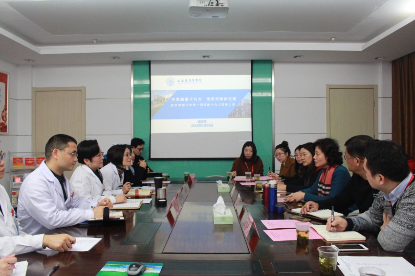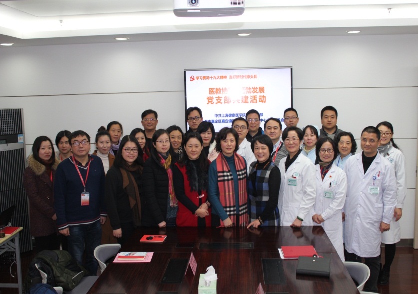 1月19日,教务党支部与嘉定镇街道社区卫生服务中心党支部开展了题为“学习贯彻十九大精神,争当新时代排头兵”的主题党日暨结对共建活动。副校长唐红梅、教务党支部书记张梅、附属嘉定区中心医院副院长陈颖敏、嘉定镇街道社区卫生服务中心党支部书记陶琼英,以及双方支部党员、民主党派人士30余名同志参加。