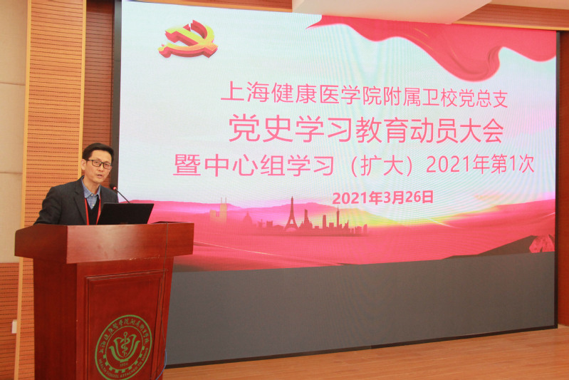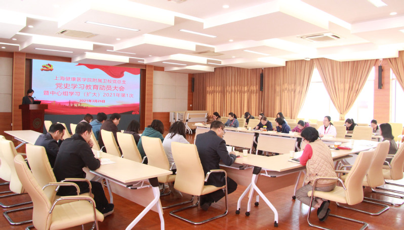 3月26日,附属卫校党总支召开党史学习教育动员大会暨中心组(扩大)学习会议,全体校领导、中心组成员、全体中层干部参会。校党总支副书记、校长汤磊主持会议。