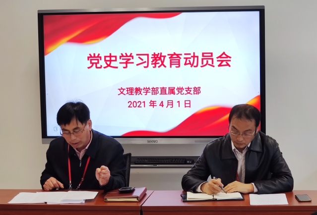 4月1日下午,文理教学部在南苑2号楼308会议室召开党史学习教育动员大会,党支部书记秦禹权作动员讲话,对教学部党史学习教育进行全面动员和布置,党支部副书记、主任耿铭主持会议。