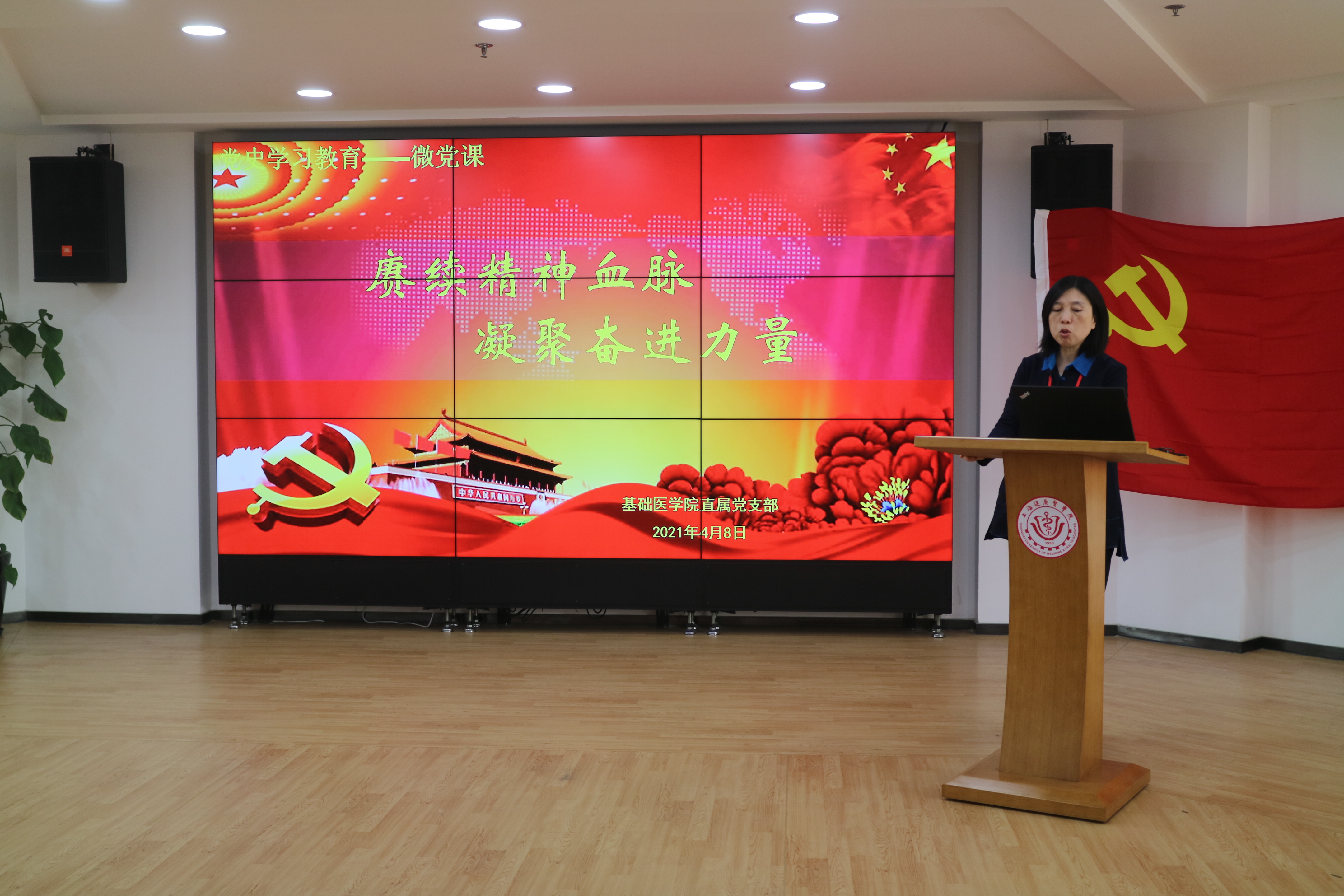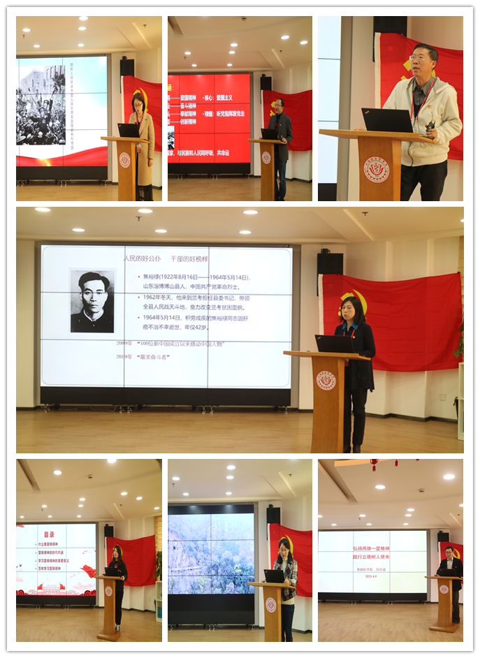 今年是中国共产党成立100周年,是实施“十四五”规划、开启全面建设社会主义现代化国家 新征程的第一年。我们学党史、悟思想、办实事、开新局,从百年党史中汲取精神和力量。基础医学院直属党支部19名党员,每人讲述一种革命精神,从“五四”运动到西柏坡,从抗美援朝到“两弹一星”,从浦东改革开放到抗击疫情,跨越了新民主主义革命、社会主义革命和建设、改革开放等三个历史阶段。为了讲好这次微党课,党员教师们精心准备,制作了图文并茂的PPT,大家以饱满的热情,声情并茂地讲述了革命精神的内涵本质、重大意义和在新的历史时期如何继承发扬。