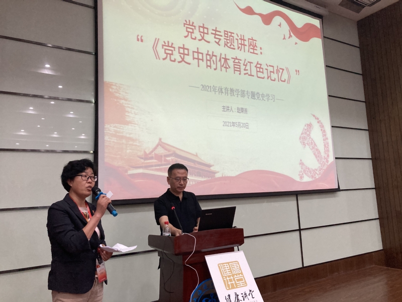 讲座由体育教学部副主任、副书记崔斌主持,体育教学部直属党支部书记郁建新作总结发言。