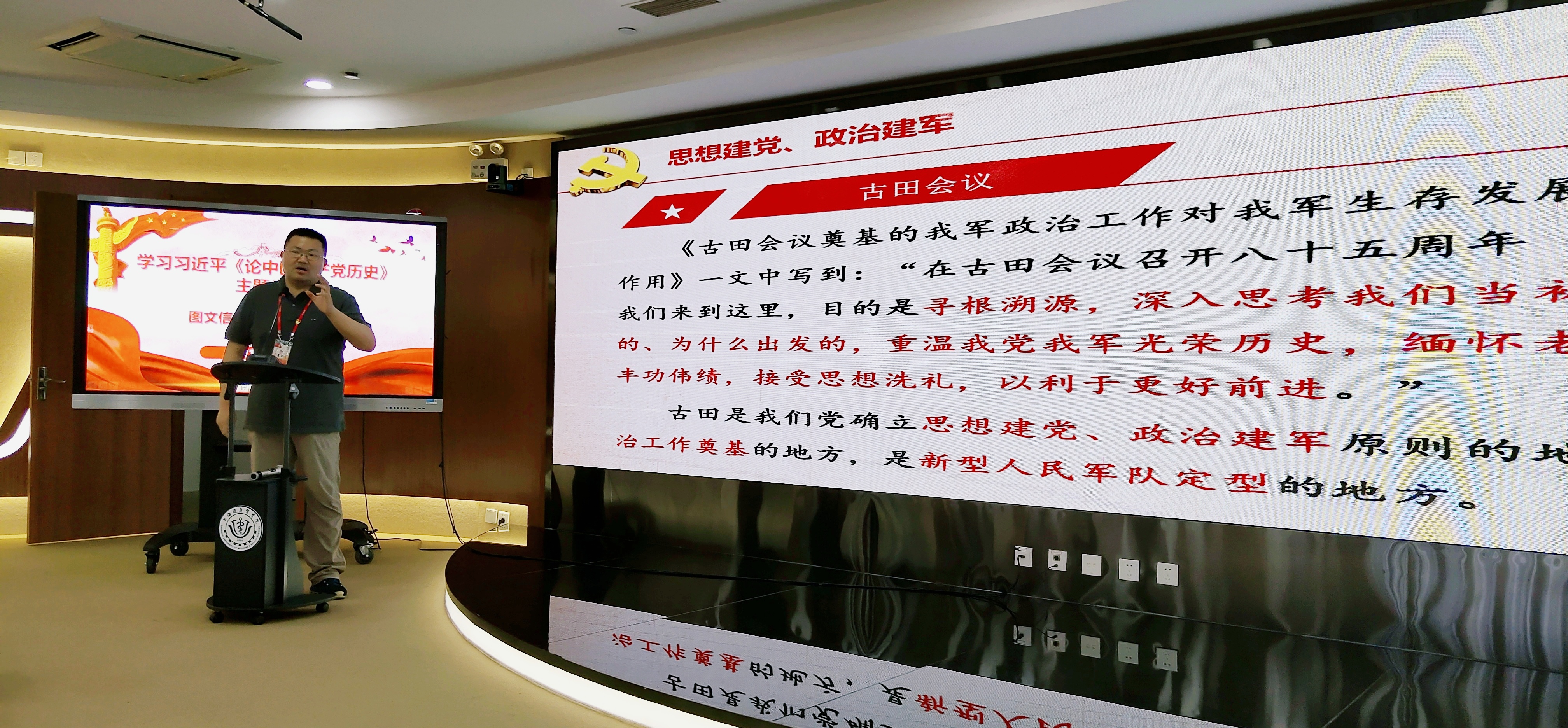 6月25日,图文信息联合直属党支部全体党员齐聚图书馆5楼会议室开展集中学习,本次学习有幸邀请到医学影像学院专职党建员、党总支宣传委员谭松珊老师为本支部所有党员做题为“学习习近平《论中国共产党历史》”专题报告。