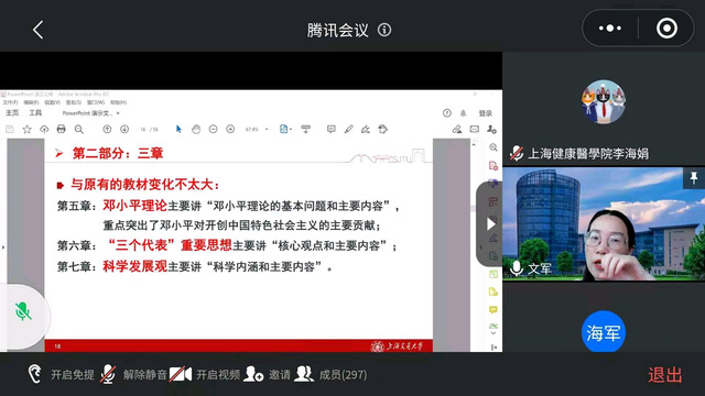 在新学期即将开学之际,为了更好地把握《毛泽东思想与中国特色社会主义理论体系概论》课程教材新修订的基本状况,并深入学习贯彻习近平总书记“七一”重要讲话精神并把这一精神贯穿到教学之中,8月20日下午,马克思主义中国化教研室全体教师参加了上海市教委思想政治理论课教学指导委员会“概论课”分教指委组织的“学习习近平总书记‘七一’重要讲话精神暨《毛泽东思想与中国特色社会主义理论体系概论》新版教材备课研讨会”。因受疫情影响,本次会议主要在线上举行。