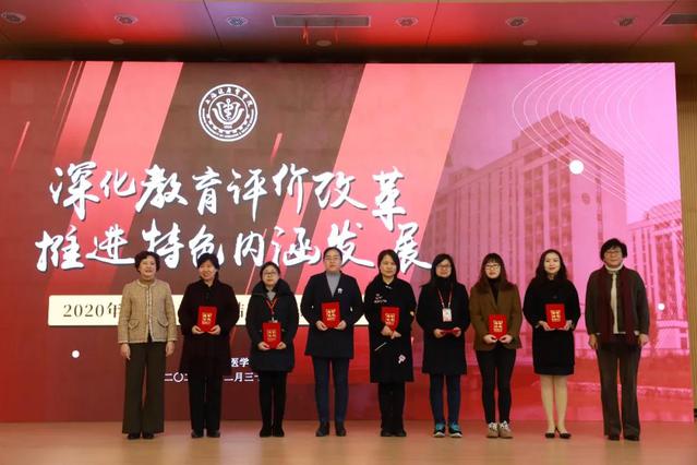 在全校师生、附属医院、教学医院、社区联盟等共同努力下,学校在教学改革、教师教学竞赛、学生学科技能竞赛等方面均取得了丰硕成绩。与会校领导共同为2020年在教学改革中获奖师生代表颁发荣誉证书。