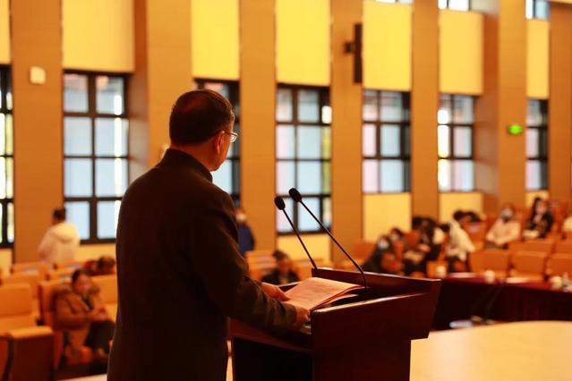 市教卫工作党委二级巡视员杨伟人(主持学校党委工作)为本次大会致辞。他指出,围绕“量化差距,提高质量;强化特色,合作发展”年度办学目标,全校教工上下同欲、左右同向、勠力同心,共筑健康梦。同时希望2021年每一位“健康人”坚持以评价改革为牵引,全面深化教育改革,实现改革与育人深度融合、高效联动。真正做到:第一,守初心,担使命,全面落实立德树人根本任务;第二,抢机遇,抓落实,全面提高人才培养质量;第三,对标准,补短板,全面深化合格评估工作。