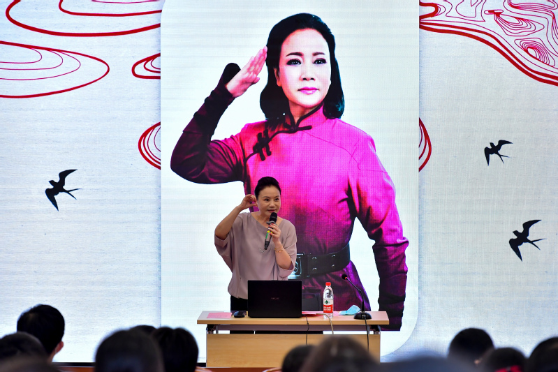 将“未惜头颅献故国,甘将热血沃中华”的爱国情怀和浩然正气糅合艺术创作中,为在场的每位学生呈现一位抗日女英雄赵一曼的艺术形象,以劳模艺术家的执着匠心,传递着90多年前我们共产党人的初心品格、家国情怀与理想信念,这一艺术共鸣所辐射的信仰力量,以千钧之力,震撼了在场的每一位学生。