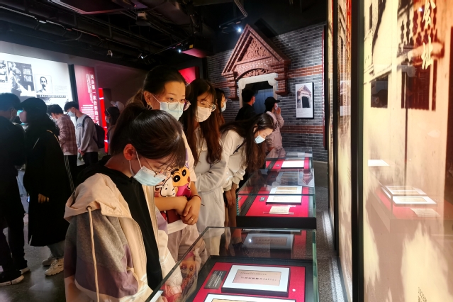 中共四大纪念馆位于虹口区四川北路公园内,为迎接建党100周年进行了改建修缮,纪念馆由序厅、主展厅、影视厅和副展厅等组成,完整再现了1925年1月中共四大召开时的场景。展览以上海老风貌石库门元素贯穿整个展线,学院一行穿过石库门,依次参观各个展厅,静心观览展示中的中共四大会议通知、中共四大会址的考证、党的第一份日报《热血日报》和14份大会文件等展品,在事迹简介墙前驻足观看,仿佛置身于上世纪二三十年代的上海里弄中,大家无不沉浸其中,为先辈们的革命精神和经历而折服,更深感我们党发展之不易。中共四大是我们党探索革命理论、实践群众化的组织路线和加强自身建设伟大历程中的一座历史丰碑,是推动党实现从宣传马克思主义的革命团体到群众性政党的伟大跨越。