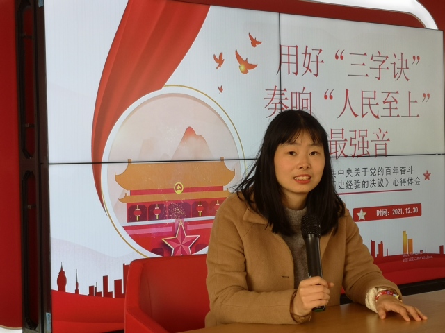 李娟娟同志作了《从“第三个重大历史决议”看中国共产党百年奋进历程——四个历史时期、四个伟大飞跃和四个庄严宣告》交流发言。