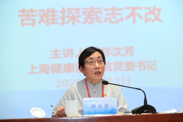 在理论学习中,郑沈芳书记结合“四史”内容,从“史”到“今”讲述了党的发展历史和取得伟大成绩原因,从党的发展目标启示个人奋斗方向。郑书记从三个方面娓娓道来,第一、以史为镜、观照未来。重点阐述学习“四史”重要性,从党的历史角度阐述党的目标构建过程,目标实现过程,强调目标的实现是一个持续过程,把目标的实现从国家高度落脚到学校层面,用唯物史观来分析我们党领导全国人民建设社会主义的整个发展过程,她反复强调广大党员在学习“四史”过程中,一定要把历史经验运用到实践工作中。第二、初心不变、理想坚定。重点阐述了坚定理想信念的重要性,强调马克思主义在党的发展历程中的重要性和不断发展的定律,呼吁全体党员必须原原本本学原著,从原著中汲取力量,保持初心,坚持立场、不断斗争。第三、想全面、用辩证、看长远。要研判形势, “四史”学习必须要与当前各项工作、面临的国内外形势紧密结合起来,她从当前我国正面临的国际国内形势分析,从国家战略布局分析矛盾辩证法的实际应用,希望广大党员同志把握好形势,从历史中学习知识、汲取力量,看长远,才能走更远。