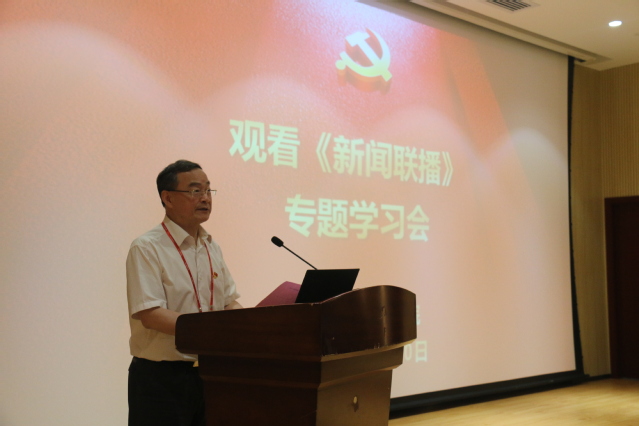 6月30日在学校北苑200人报告厅,全体校领导、党务部门负责人、各党总支、直属党支部书记、教师代表、学生代表集体观看中央电视台一频道晚间《新闻联播》节目,认真学习习近平总书记给复旦大学《共产党宣言》展示馆党员志愿服务队全体成员的回信精神。四位同志就学习习近平总书记回信精神,结合实际谈了体会。党委副书记、校长黄钢主持会议。