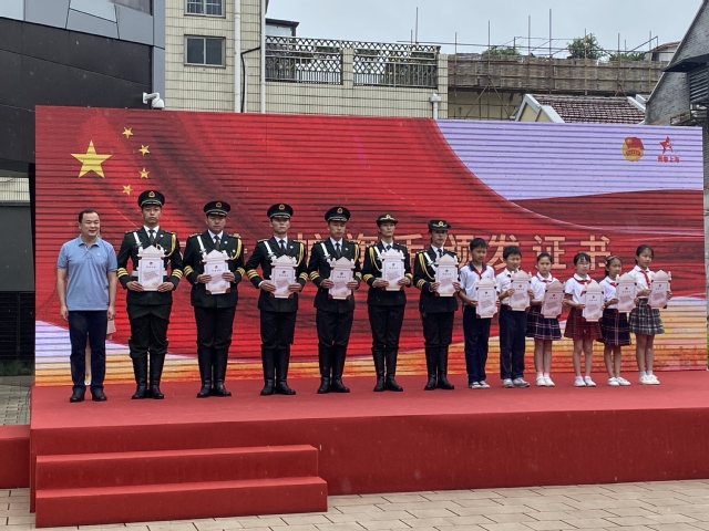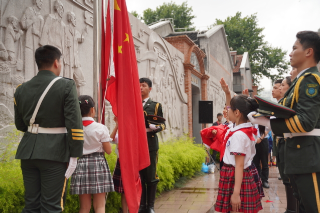 6月27日上午,由共青团上海委员会等单位联合主办的“国旗下成长”——上海市非公有制经济组织团员青年庆祝中国共产党成立99周年升旗仪式在渔阳里举行。永利官网6名仪仗队队员携各非公企业招募的小小升旗手、护旗手,共同完成了出旗、升旗仪式。团市委副书记邬斌为仪仗队队员们颁发纪念证书并合影。