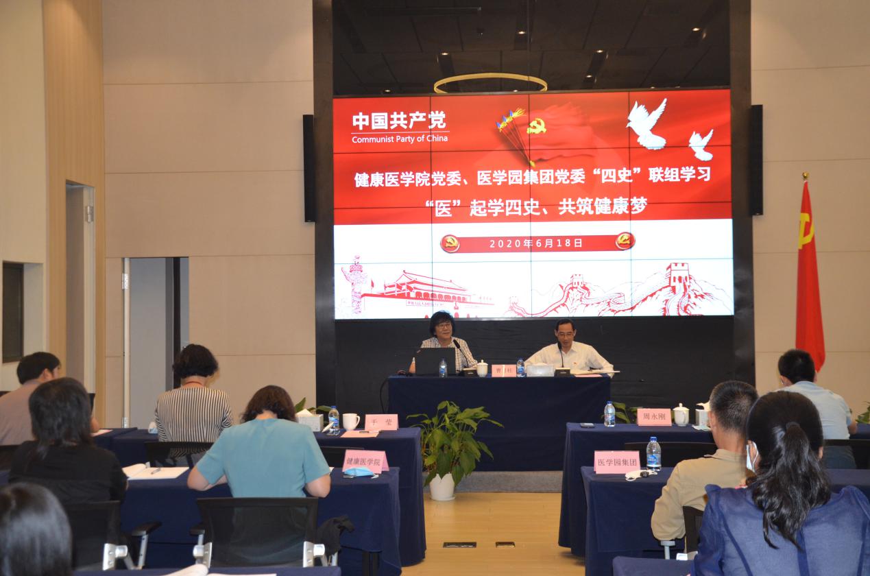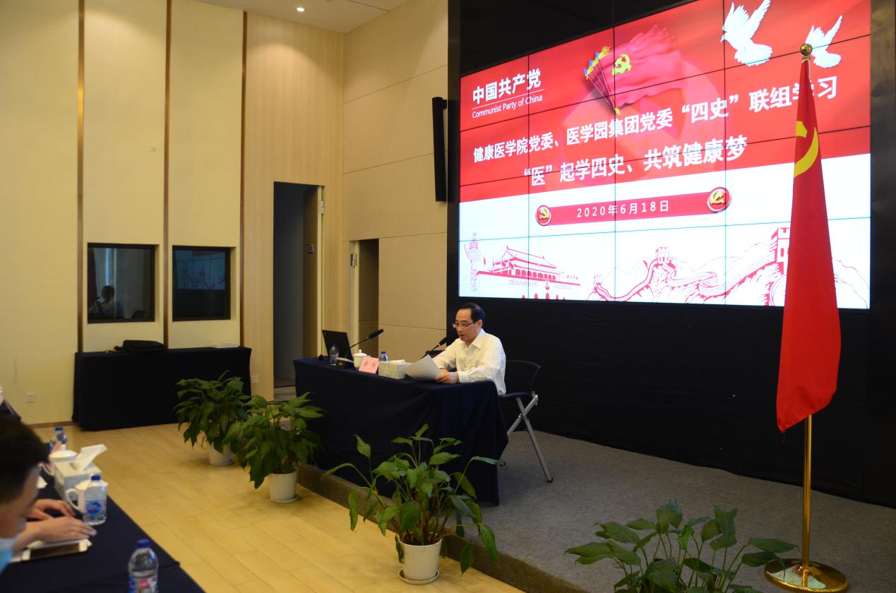 校党委副书记于莹讲话,她首先感谢医学园集团党委长期以来对学校工作的支持,她从“四史”学习教育的来由重申“四史”学习教育的重要性,再次强调中国共产党人的初心和使命就是“为中国人民谋幸福,为中华民族谋复兴”,“人民健康”是一切的基础,永利官网作为全国唯一一所以“健康”为校名、培养医学实用型人才的高校,要以“人民健康”为使命,要在推进上海公共卫生事业“联防联控”的同时,通过“联学联建”,进一步加强与上海国际医学园区的交流合作,统筹资源,着力构建区域化党建新格局,通过“四史”学习教育,促使广大党员干部深刻认识红色政权来之不易、新中国来之不易、中国特色社会主义来之不易;通过加强区域化党建,共同把“四史”学习教育与人民健康事业向纵深推进,进一步检视和校准坐标,做到不忘历史、不忘初心,知史爱党、知史爱国。