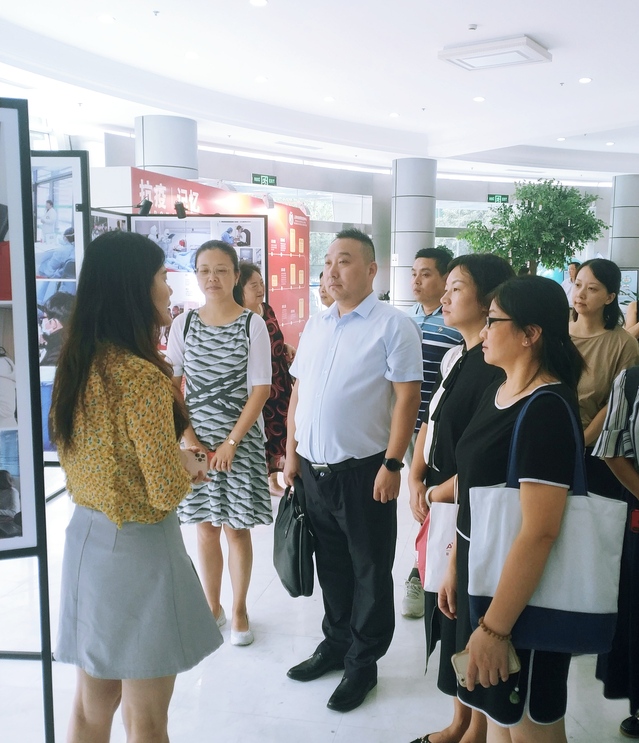 会前盟员们共同参观了《“抗疫记忆”上海疾控防控新冠肺炎疫情》主题展。一幅幅生动的照片记录了全市3200多名疾控人员在疫情研判、流行病学调查、消毒和感染防护指导、实验室检测、健康科普教育等七个方面的工作。这些可爱的抗疫英雄,他们不分日夜坚守岗位,无暇顾及脸上深深的印痕、眼角的疲倦、对家人的想念,只为齐心协力阻击疫情,用心用情守护这座城。让大家充满感动,也汲取了满满的精神力量。