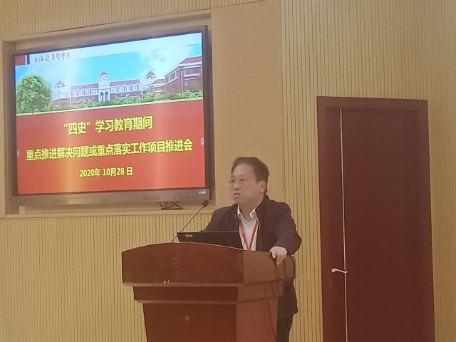 首先由党委组织部部长郭戎静汇报了“四史”学习教育期间重点推进解决问题或重点落实工作项目推进情况。她指出,自2020年7月以来,学校和二级学院(部)层面在充分调研的基础上,通过统筹资源以及与有关职能部门进行对接沟通,确定了推进的项目,校级层面共7个工作项目,13个党总支(直属党支部)共51工作项目。在工作推进过程中,各职能部门和二级学院(部)“实”字导向,始终把解决问题、推动学校事业发展作为衡量学习教育成效的重要标尺,把“四史”学习教育与巩固主题教育成果、推动长效机制落实结合起来,把“四史”学习教育与改进工作作风结合起来,一切从实处抓、一切往实处落,持续为师生解决问题上下功夫。