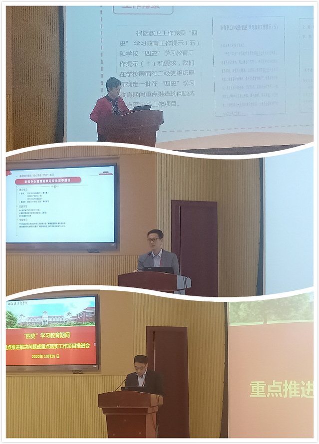 为扎实推进学校“四史”学习教育期间重点推进解决问题或重点落实工作项目,10月28日下午,学校党委在北苑200人报告厅召开了“四史”学习教育期间重点推进解决问题或重点落实工作项目推进会,出席会议的有市教卫党委二级巡视员杨伟人、学校党委组织部部长郭戎静、承担校领导重点落实工作的相关职能负责人和二级学院(部)领导班子负责人,会议由党委副书记于莹主持。