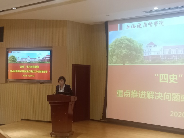 接着,护管学院党总支书记汤磊和医疗器械学院院长胡兆燕分别就本部门的推进工作做了交流发言。护管学院在推进过程中通过强化组织领导、精心安排“四史”学习,将“四史”学习融入支部建设全过程,坚持问题导向,迎难而上,突破攻坚。医疗器械学院将“四史”学习教育与学院中心工作密切结合,从历史中汲取经验和智慧,增强开拓前进勇气和力量,充分发扬奋斗精神,切实解决学院办学过程中存在的问题。