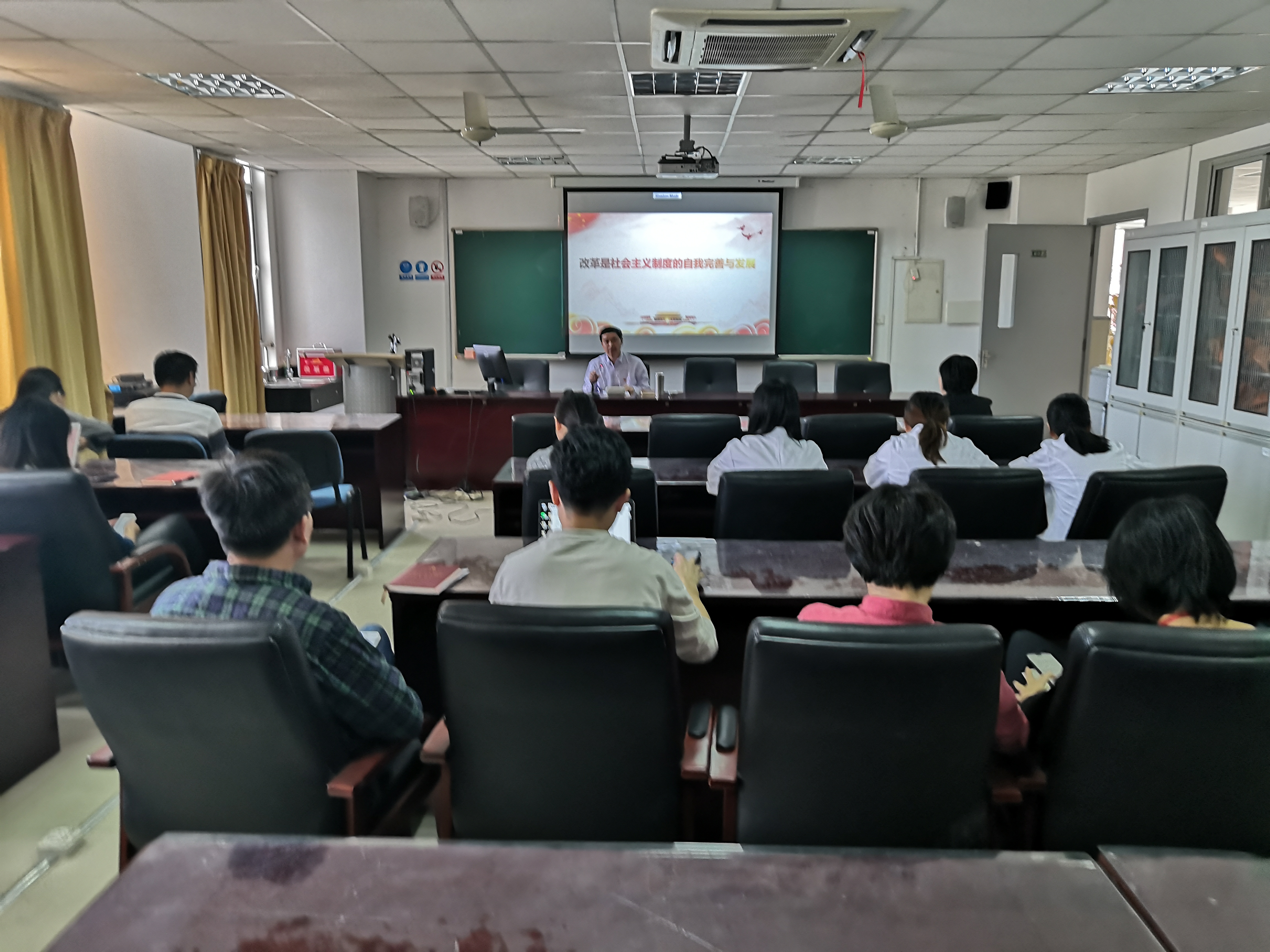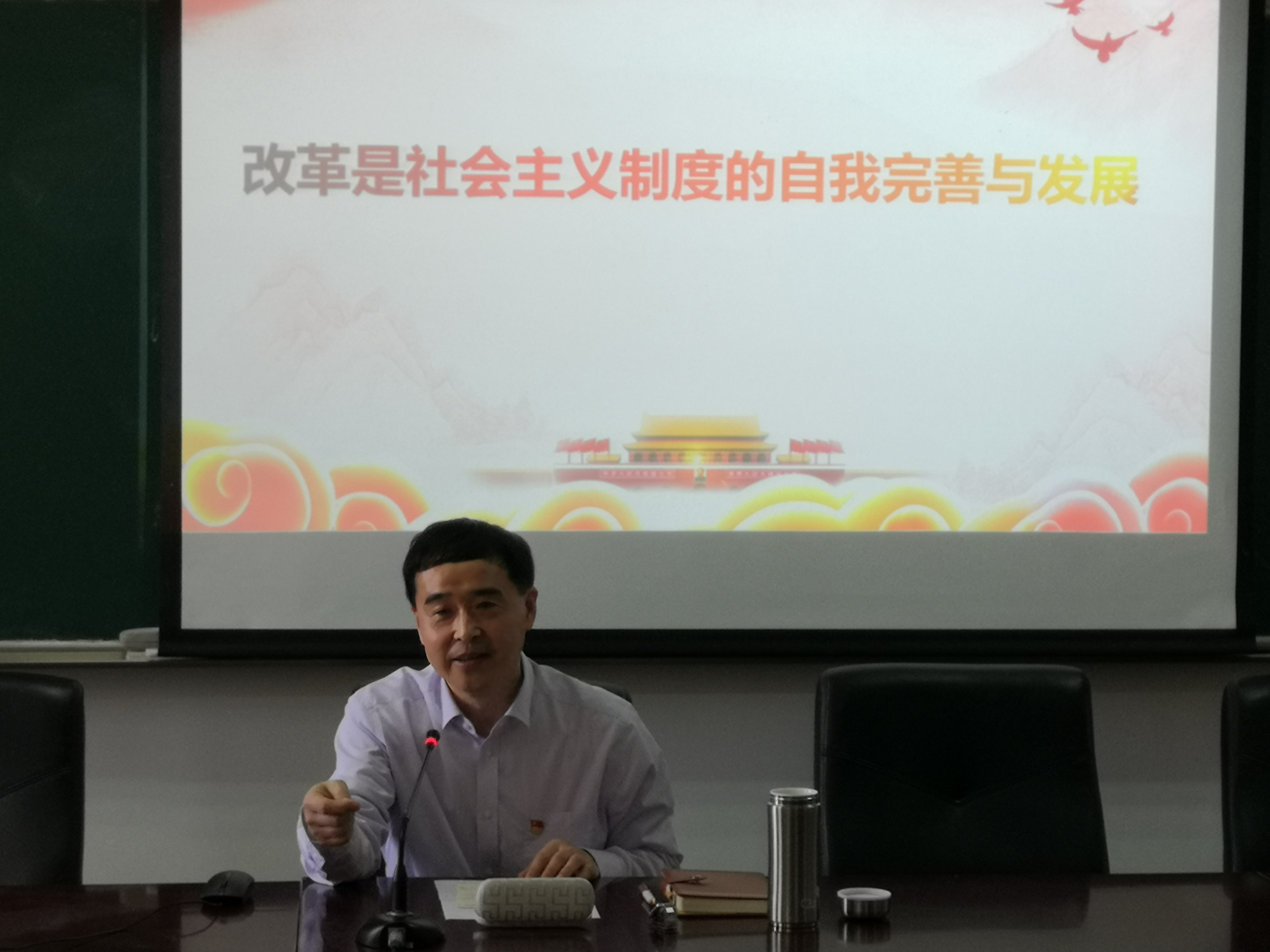 为进一步提高全院教师的政治理论素养,巩固“四史”学习教育活动成效,持续深入推进 “四史”学习教育,10月8日下午,校党委副书记、纪委书记李明磊为基础医学院全体教师上了一堂“改革是社会主义制度的自我完善与发展”的党课。