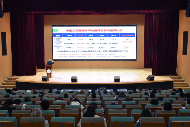 回顾医学史上三次革命后更大的挑战和面对工业化、城镇化、人口老龄化进程加快,中国居民生产生活方式和疾病谱不断变化的现实境遇,伴随着健康中国上升为国家战略,人民健康优先发展的战略地位更加凸显。黄校长重点从“厚德至善守初心”、“巧抓机遇,服务健康中国”和“践行康民担使命”出发,结合学生所学的专业,讲述健康园里的健康新人如何成长为新时代人民健康的守护者,担负起时代使命。