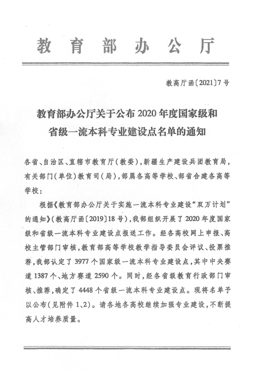 近日,教育部办公厅印发《关于公布2020年度国家级和省级一流本科专业建设点名单的通知》(教高厅函〔2021〕7号),永利官网护理学专业成功入选国家级一流本科专业建设点,生物医学工程专业、医学影像技术专业和康复物理治疗专业成功入选省级一流本科专业建设点。“十四五”开局,学校专业建设迎来“开门红”,国家级一流本科专业建设点实现零突破。