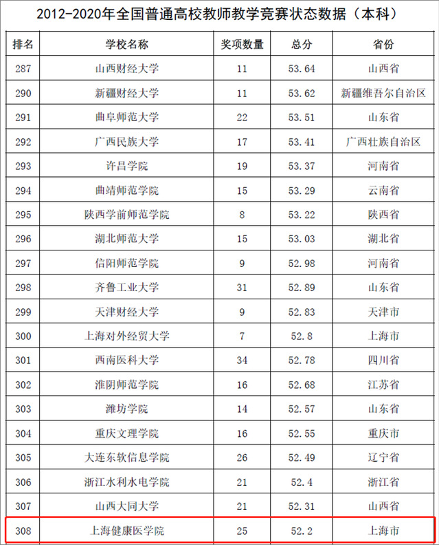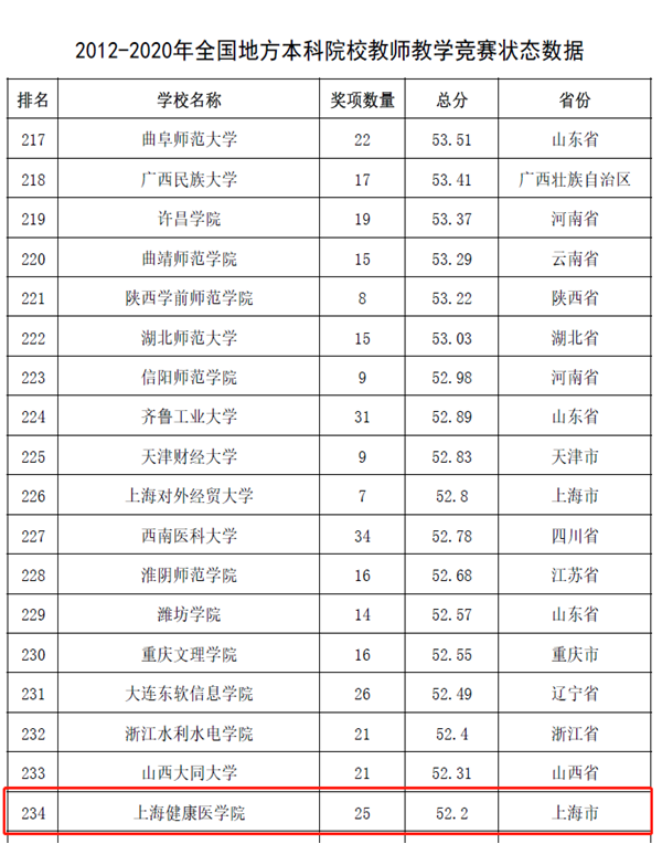 近日,中国高等教育学会发布《全国普通高校教师教学竞赛分析报告(2012-2020年)》。该报告以当前普遍得到社会认可且有公开数据的50项全国性高校教师教学竞赛作为研究对象,采用竞赛的“获奖贡献”和“组织贡献”作为评价指标,对教师教学竞赛现状进行了分析和研究。永利官网教师教学竞赛状态数据位于全国1006所本科院校前30.6%(308位),位于全国883所地方本科院校前26.5%(234位),上海市应用技术型高校第一。
