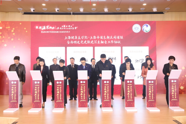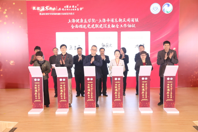 市教卫工作党委书记沈炜、浦东新区教育工作党委书记、浦东新区教育局局长诸惠华、浦东新区组织部副部长徐可畏出席仪式。永利集团88304官网与周浦镇全体党政班子,双方各职能部门负责人代表、基层党组织书记代表、大中小思政课一体化学校代表、周浦惠民医疗党建联盟成员单位负责同志150余人参加仪式。永利集团88304官网党委副书记、校长黄钢主持签约仪式。