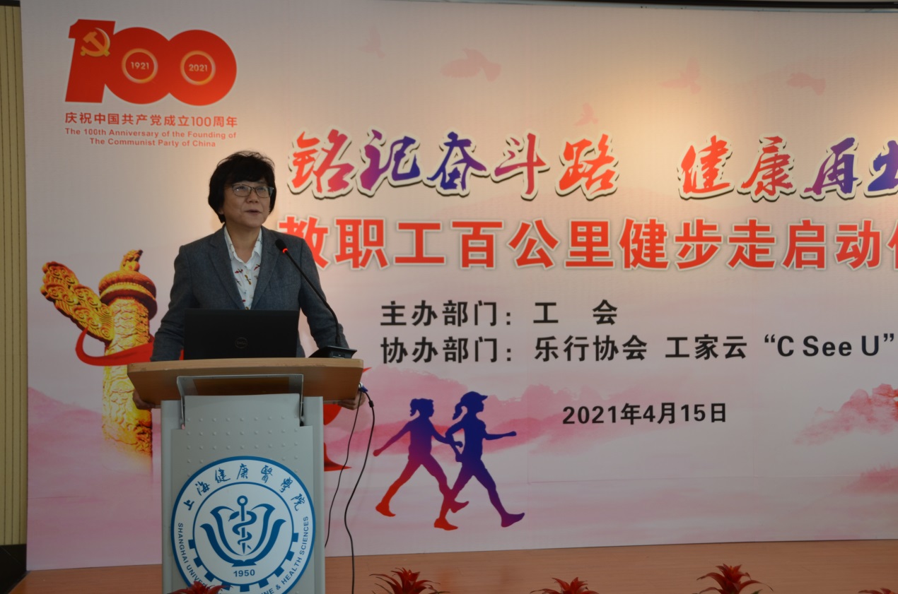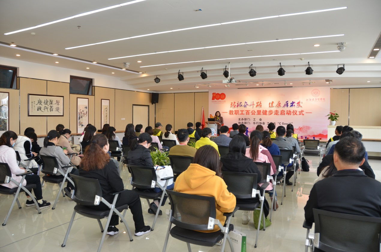 为庆祝中国共产党成立一百周年,讴歌党的辉煌历程和丰功伟绩,深情回顾党的奋斗历史,大力营造建党100周年的浓厚氛围,激励永利官网教职工紧密团结在以习近平同志为核心的党中央周围,充分发扬忠诚为党、爱国荣校的精神风貌,由校工会主办、乐行户外运动协会承办,通过工家云——“CseeU”结合微信运动举办了“铭记奋斗路,健康再出发”为主题的教职工健步走活动。4月15日中午在工会活动室举行了健步走活动的启动仪式,活动结合党史学习知识竞赛,将持续至“七一”前夕。校党委副书记、校工会主席于莹、相关职能部门负责人、工会干部及教职工代表近60人出席了仪式。