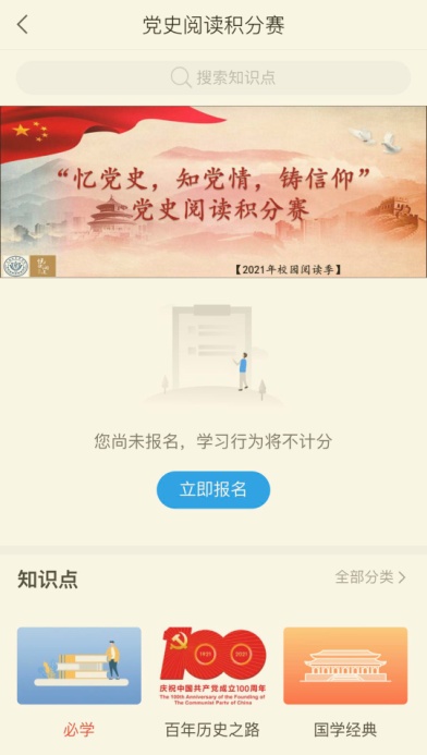 下载并登录“学习通”手机客户端,点击“阅读积分赛-立即报名”,即完成报名直接参赛。