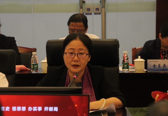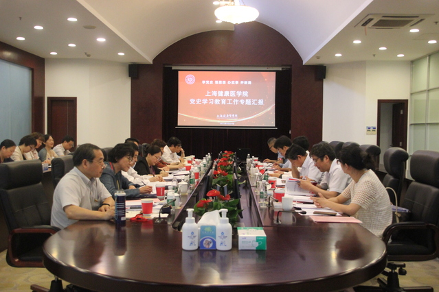 郭永瑾重点汇报了党史学习教育总体开展情况、亮点特色、存在的不足和下一阶段工作打算。学校党委坚持以习近平总书记在党史学习教育动员大会上的重要讲话精神为根本遵循,按照市委和教卫工作党委的统一部署,坚持学为要、行为先、实为纲,将党史学习教育与深入学习贯彻落实习近平新时代中国特色社会主义思想结合起来,作为一项贯穿全年的重大政治任务,把牢主题主线,引导广大师生学史明理、学史增信、学史崇德、学史力行。从“五个方面”,抓好 “五项重点”,在“四融四促”上持续内化深化,走心走实。一是融聚师生力量,促学习教育落地有声;二是融合区域资源,促学习教育走深走实;三是融入育人实践,促学习教育入脑入心;四是融合学校特色,促学习教育生动出彩。